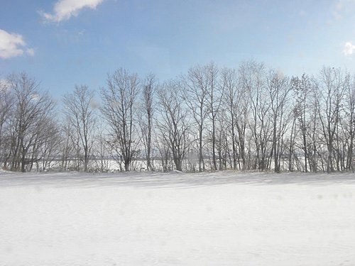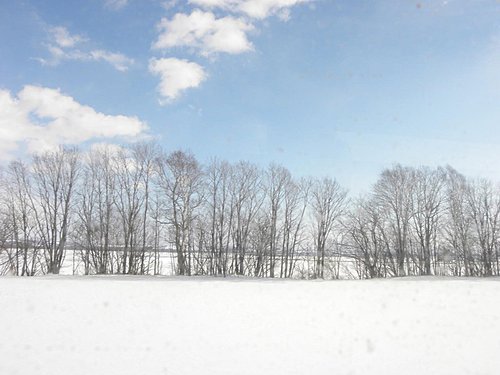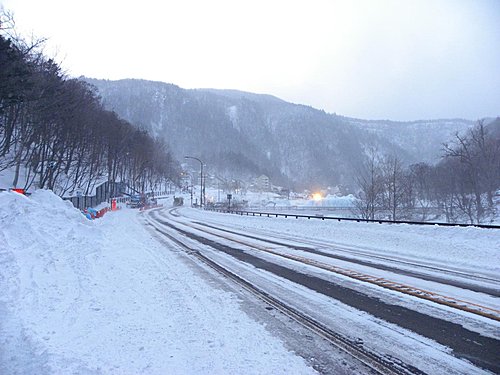 因為那個離開網走的山路好小條喔(因為兩旁都被高高的雪堆縮小道路距離)