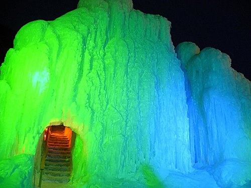 洞穴裡面很多冰住或是冰筍都會打上燈光喔
